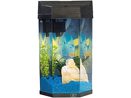 Un acquario con sistema di filtraggio e illuminazione integrati, facile da pulire e venduto a un ottimo prezzo.