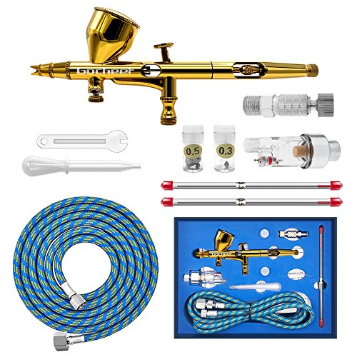 Il kit Gocheer è quello dal costo più contenuto tra quelli presenti in questa guida, ma questo non equivale necessariamente a un prodotto di qualità inferiore. Si tratta di un aerografo a doppia azione ottimo per disegnare, dipingere con colori acrilici, decorare dolci, fare tatuaggi temporanei e perfino realizzare lavori di bricolage. Dalle recensioni disponibili online, si legge come lo strumento sia perfetto anche per realizzare il trattamento per capelli o di ossigenoterapia sul viso.
