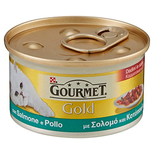 Questa confezione contiene 24 scatolette al pollo e salmone realizzate dal famoso marchio Purina che ha creato la linea Gourmet, pensata per i gattini più esigenti. La ricetta saporita di questo alimento – bocconcini di pesce o carne con una salsa dal gusto intenso – sembra piacere proprio a tutti e, se anche il vostro micio sarà d’accordo, potrete fare una bella scorta e risparmiare una cifra importante sull’acquisto