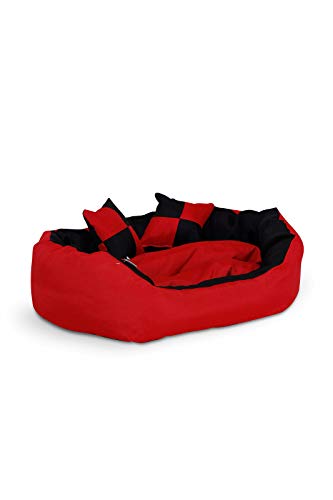 Il modello si presenta con la classica forma ovale ma con sponde più alte per garantire comfort e protezione, con inclusi due morbidi cuscini aggiuntivi, sfoderabili e lavabili all’occorrenza, per fornire un valido sostegno per la testa, il collo e la schiena, anche se in realtà tendono a essere più scenici che funzionali perché il cane potrebbe facilmente scambiarli per dei giocattoli tentando, di conseguenza, di distruggerli.