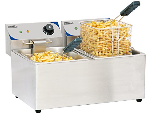 Una friggitrice elettrica con una potenza di 6500 watt e dotata di ben due vasche da 8 litri ciascuna da poter utilizzare separatamente. Ottima per chi ha un’attività nella ristorazione.