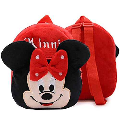 Le tracolle regolabili sono rosse con i tipici pois bianchi di Minnie. Il peluche è ben fatto, ci sono tutti i tipici elementi di questo personaggio Disney, tanto amato dai bambini.