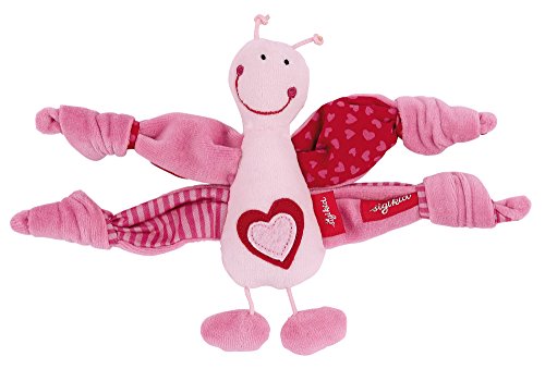 Una farfalla morbidissima che produce tintinnii quando viene mossa. Le ali hanno consistenze diverse che risultano piacevoli al tatto e fanno rilassare il piccolo, quindi è anche un ottimo aiuto per fare la nanna. Le dimensioni sono ideali per assicurare una presa salda anche con le sue piccole manine.