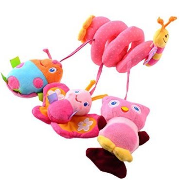 Questo morbidissimo peluche da poter appendere al passeggino e alla culla o al lettino è realizzato con materiali sicuri e certificati. Dal bruchetto a spirale scendono tre altri animaletti colorati con i quali il piccolo potrà giocare stimolando la sua manualità e il senso della vista.