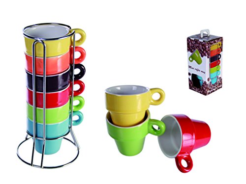 Un set composto da sei tazzine colorate, molto piacevoli da utilizzare durante la colazione. A differenza di altre offerte presenti sul mercato, questa colpisce non solo per le piacevoli tinte, ma anche perché occupa poco spazio: le tazzine si impilano e restano ferme in una struttura metallica, così che il dono non risulti invadente. Il risparmio di spazio ha però sacrificato i piattini, che quindi non sono presenti, non dimenticate questo particolare al momento dell’acquisto.
