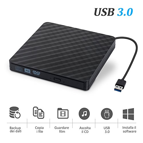 La connessione con il Pc o laptop, nei modelli più recenti, avviene tramite porta USB 3.0, la più veloce sul mercato. I modelli con tale interfaccia sono comunque retro compatibili con Pc o notebook dotati di connessione USB 2.0 o 1.0. Quindi, scegliendo un lettore CD USB 3.0 non si avranno problemi di compatibilità e si potrà utilizzare praticamente con tutti i laptop e Pc in commercio, e anche con i vari MacBook o iMac.