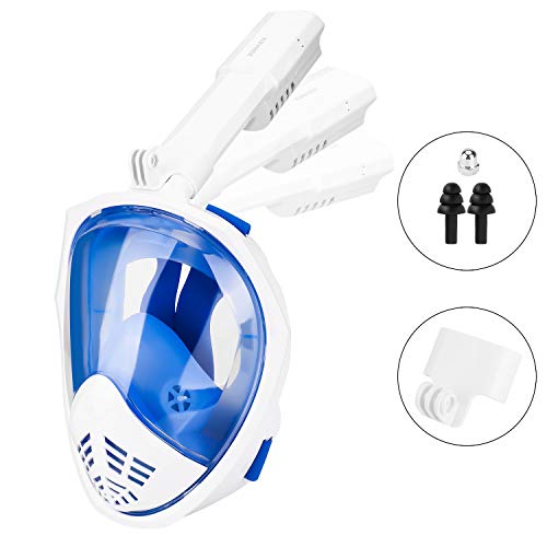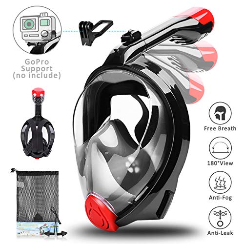 Il design innovativo con tecnologia Dry Snorkel è a prova di infiltrazioni, anche in caso di immersione totale, e previene il soffocamento: non dovrete più preoccuparvi dell’acqua che penetra e che vi disturba durante l’immersione. La doppia aerazione (simile al sistema degli aspiratori domestici) e la fascia contribuiscono a impedire l’appannamento e l’entrata dell’acqua: regolate la fascia finché non aderisce perfettamente al viso. Inoltre, questa è flessibile e vanta un materiale confortevole che non vi tirerà o strapperà i capelli. Per i clienti più all’avanguardia, il supporto per Action Cam è facile da montare e fissare. La maschera è disponibile in due misure (S/M, inferiore a 12 centimetri, ed L/XL, superiore a 12 centimetri).