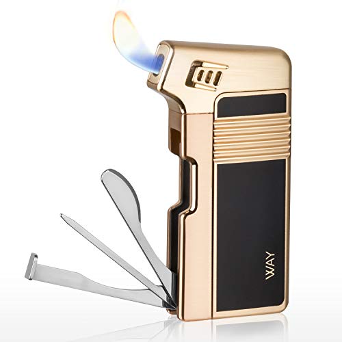 L’accendino per pipa VVAY è alimentato a gas butano ed è ricaricabile, ovviamente, ha un angolo di 45°, in modo da facilitare l’accensione del tabacco nel fornello, ed è fornito anche di un curapipe con funzionalità 3 in 1, integrato lungo uno dei bordi.