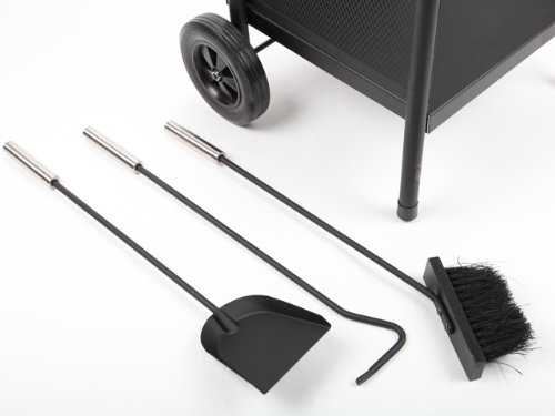 Il set proposto da Point-home ha un vantaggio importante: presenta un carrello dotato di due ruote in gomma che oltre a fungere da porta-attrezzi permette di avere a portata di mano qualche ceppo di legno senza dover necessariamente recuperarlo dal garage o apposita legnaia.