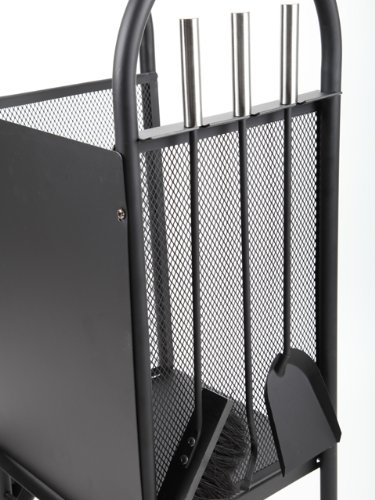 Il contenitore ha il vantaggio di avere due ruote. Su uno dei lati potrete appoggiare gli utensili inclusi nella confezione mentre nell’alloggiamento centrale i ceppi di legno da utilizzare nel camino.