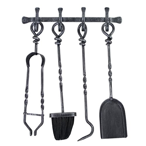 Al quarto posto della nostra classifica troviamo un prodotto estremamente classico, con linee essenziali e pochi fronzoli, adatto quindi a un ambiente rustico o comunque di campagna. Il set è interamente realizzato in ferro battuto, composto da quattro attrezzi da camino: pinza, scopettino, attizzatoio e paletta da appoggiare su un supporto con ganci che va fissato al muro.