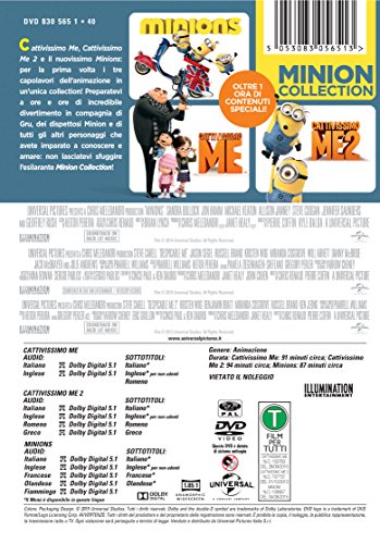 Un’edizione che si presenta adatta ai collezionisti, in quanto include, all’interno di una sola custodia, ben tre DVD. Ci sono il conosciutissimo Cattivissimo Me, il sequel Cattivissimo Me 2 e, a gran richiesta, il prequel/spin-off Minions. Infine, troverete anche sei mini film, di cui tre in esclusiva.