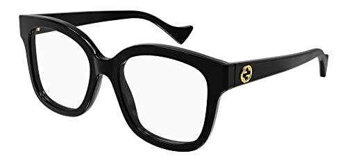 La montatura di questi occhiali da vista Gucci abbraccia uno stile ispirato agli anni ’70, presentando una finitura nera, ampie lenti quadrate e due astine ornate dal logo in metallo dorato. Queste caratteristiche conferiscono loro un’eleganza intrinseca, rendendoli particolarmente adatti al pubblico femminile.