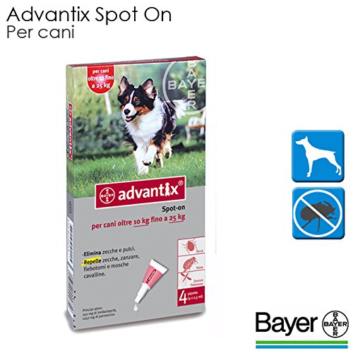 Il pregio principale dell'antiparassitario Advantix Spot-on, prodotto sempre dalla nota azienda Bayer, è quello di essere efficace anche nel repellere mosche cavalline, zanzare e pappataci, proteggendo così il cane dal rischio di contrarre malattie sgradevoli, soprattutto la Leishmaniosi, divenuta ormai endemica anche in Italia.