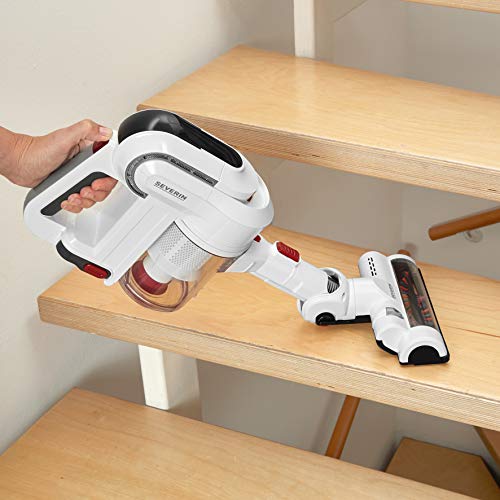 La particolare forma e il ridotto ingombro consentono di utilizzare la scopa di Severin per muoversi senza difficoltà anche in appartamenti piccoli oppure in stanze con passaggi stretti o angusti. Anche l'accesso al serbatoio in cui finisce lo sporco è agevole e le operazioni di pulizia si eseguono senza difficoltà.