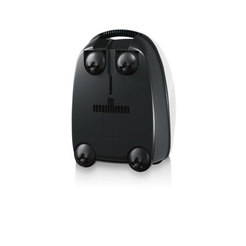 Le varie tacche indicano il minimo, il massimo e le potenze ideali per gli imbottiti, i tappeti e i pavimenti (compresi i parquet). Di aspetto essenziale, basato su un corpo per metà bianco, per metà nero, dispone di un insolito tubo flessibile in tessuto anziché in plastica, più resistente e studiato per sopportare anche i movimenti più bruschi. Lo spostamento del corpo motore, durante le sessioni di pulizia, è particolarmente fluido grazie alle quattro ruote posizionate al di sotto. Fra le stesse trova posto la fessura alla quale si fissa il tubo con la spazzola inserita, facilitando il parcheggio dell’aspirapolvere.