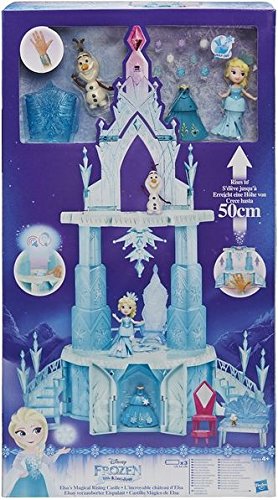 Si tratta di un piccolo palazzo richiudibile, ricco di funzioni che ricreano la magia del cartone animato. Nella confezione è presente una bambolina raffigurante Elsa, alta circa 7 cm, che può interagire con lo scenario del castello incantato e cambiare vestito. Grazie ai diversi accessori inclusi nella scatola, è possibile creare dei look personalizzati. Le pareti della dimora di Elsa sono dotate di pannelli girevoli, che danno un tocco di magia allo scenario di gioco.
