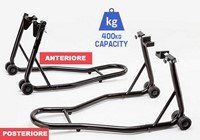 Questa coppia di cavalletti alzamoto è in grado di sorreggere moto e scooter fino a un peso massimo di 400 kg, in pratica quasi tutte le due ruote in commercio.