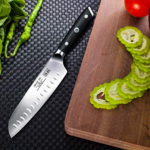 Appassionati di taglio che non vogliono perdere nemmeno un colpo durante la preparazione di un piatto fatevi avanti. Il modello Shanzu possiede tutte le caratteristiche che lo rendono adatto a figurare in una guida per scegliere il miglior coltello santoku.