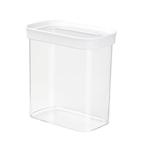 Si tratta di un recipiente che si presenta con un design raffinato ed elegante. Il barattolo ha forma squadrata ed è impilabile con altri moduli della sua linea, così potrete ottimizzare lo spazio in dispensa e organizzare le scorte. Il contenitore è solido ed è realizzato in materiale trasparente SAN.