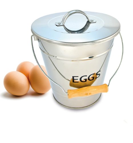 È interamente realizzato in acciaio inossidabile con finitura lucida a specchio e misura 24 x 24 x 18 centimetri; il manico, inoltre, è dotato di una comoda impugnatura in legno, ben rifinito e trattato con vernice a olio lucida, con sagoma ergonomica in modo da rendere più confortevole portarlo in giro. Il secchiello per uova Eddingtons, infatti, è ideale come contenitore per la raccolta e il trasporto delle uova, resistente e ampio, capace di contenere dalle quindici alle venti uova a seconda della loro dimensione.