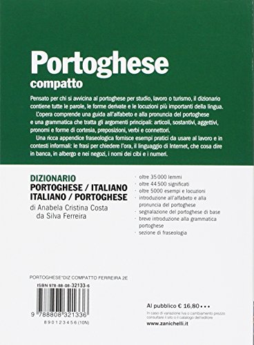 Tra i più venduti troviamo quello proposto da Zanichelli, scritto da Anabela Cristina Costa da Silva Ferreira. Si tratta di un dizionario compatto portoghese-italiano e italiano-portoghese, ideale per gli utenti che si avvicinano a questa lingua per studio, turismo o lavoro, contenendo le parole, forme derivate e locuzioni più importanti.