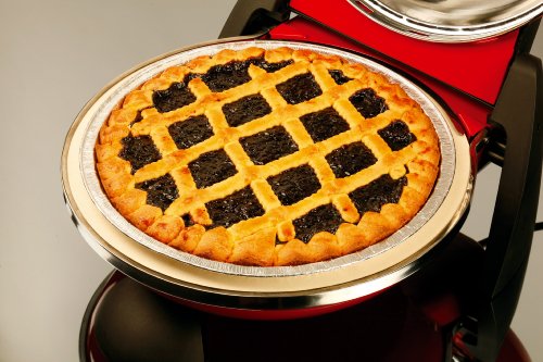 Il vassoio per la pizza è di 25 cm ed è incluso nella confezione insieme al pratico mattarello da 30 cm che consente di stendere lo strato sottile di pasta per avere una pizza croccante e leggera. Le spie in alto segnalano il raggiungimento della temperatura ideale, mentre le manopole controllano con facilità la distribuzione del calore, in alto, basso o entrambe le posizioni.