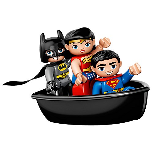 Oltre a un ponte sollevabile, sono inclusi tre personaggi, la barca di Batman e la moto di Wonder Woman, così il bambino potrà giocare con i suoi supereroi preferiti inventando avventure sempre diverse.