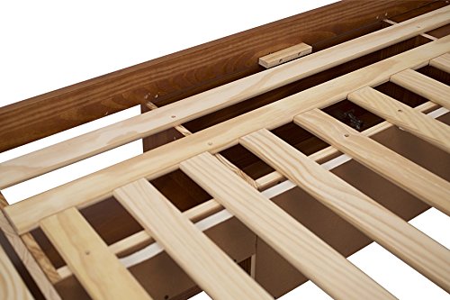 Il letto è realizzato in legno di pino massiccio che garantisce robustezza e solidità all’intera struttura, mentre la rete con doghe inclusa nel prezzo offre una buona qualità di riposo senza avvertire fastidi al risveglio.