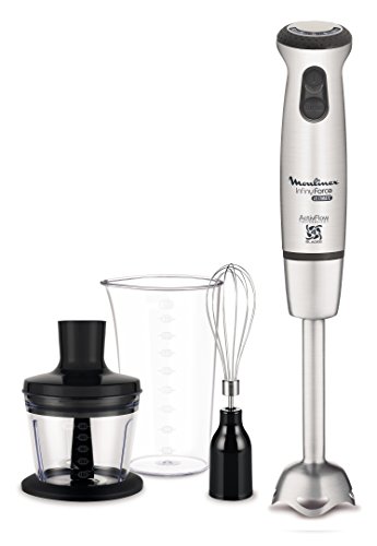 Nella nostra guida su come scegliere un buon minipimer consideriamo anche modelli di altri produttori che non sia la Braun. Come il Moulinex DD873D Infiny Force Ultimate che sfoggia un potentissimo motore da 1.000 watt gestibile tramite venticinque velocità variabili. Per sfruttare al massimo la potenza del motore è disponibile un tasto “turbo”. Questo modello viene fornito con la tecnologia ActivFlow, che permette di tritare anche i cibi più duri.