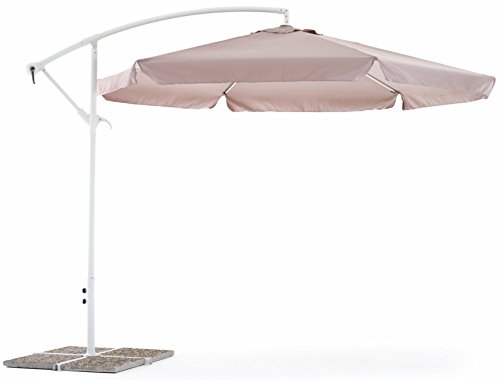 È una soluzione ideale per tenere all’ombra un tavolo all’aperto mentre si pranza con amici o familiari, oppure per coprire un lettino a bordo piscina. La struttura in ferro promette molto bene in quanto a durevolezza, inoltre il telo in poliestere dell’ombrellone potrà resistere con efficacia alle intemperie in quanto completamente idrorepellente.