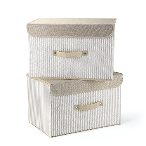 Realizzati in tessuto di cotone, sono ottimi per chi cerca un prodotto anche piacevole da vedere, con una buona qualità del tessuto e una morbidezza che può tornare utile. La copertura superiore mantiene il contenuto distante dalla polvere mentre le due maniglie laterali aiutano al momento del trasporto e della sistemazione in uno scaffale.