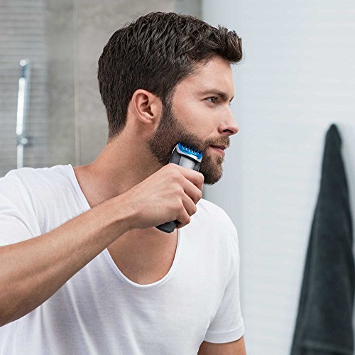 Questo modello offre numerosi vantaggi per chi lo acquista: innanzitutto, si tratta di un regolabarba (non anche tagliacapelli) di estrema precisione grazie alle 17 lunghezze (da 0,2 mm a 7 mm) con scatti di appena 0,2 mm; il rifinitore ha la doppia estremità (con regolazione di 32 mm da un lato e di soli 15 mm dall’altro, ottima per le zone difficili come sotto il naso e intorno alla bocca); è, poi, impermeabile al 100% e, quindi, completamente e comodamente lavabile.