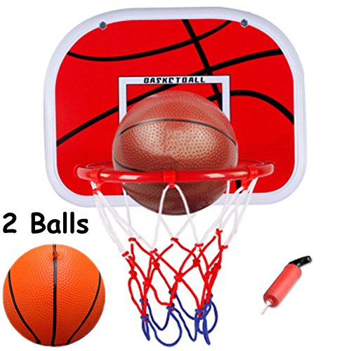 Il set comprende un canestro dal diametro di 25 centimetri, realizzato in metallo e provvisto di molla per ammortizzare meglio i colpi, due palle da basket, una pompa per gonfiarle e un tabellone in plastica ABS.