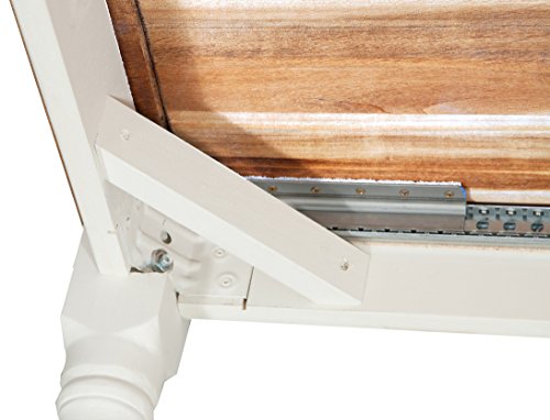 Questo prodotto ha la base di colore naturale, mentre il resto della struttura è verniciata di bianco, per creare movimento e rompere la monotonia monocromatica. Le dimensioni 90 x 90 cm sono sufficienti per una piccola famiglia, ma è possibile allungarlo fino a fargli raggiungere i 180 cm.