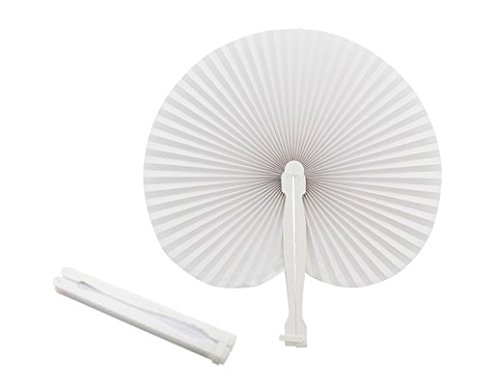 I ventagli sono realizzati in plastica e carta, sono pieghevoli e una volta aperti sono a forma di petalo e misurano 24 x 25 centimetri, quando sono ripiegati, invece, sono lunghi soltanto 13,5 centimetri, e quindi tenuti comodamente in borsa; dato l’elevato numero di pezzi contenuti nella confezione, nonché il loro colore interamente bianco, questi ventagli sono adatti soprattutto come gadgets, bomboniere e, come accennato in precedenza, come segnaposti ai matrimoni e ai banchetti.