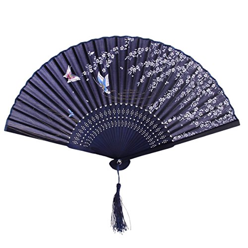 Anche quest’ultimo modello di ventaglio WINOMO è realizzato in stile giapponese, ma è leggermente più costoso rispetto al precedente dal momento che il manico è dipinto in blu ed è arricchito da una nappina ornamentale dello stesso colore.