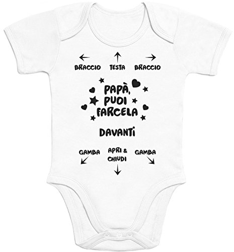 La scritta divertente è di certo il pezzo forte di questo body che più che per il bebè è pensato per alleggerire la tensione dell’attesa e far divertire il papà e tutta la famiglia.