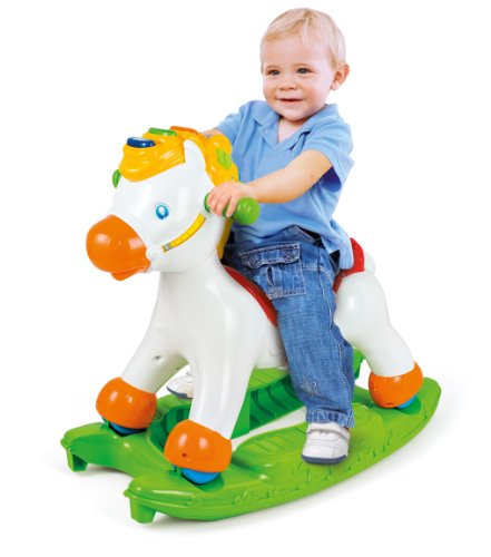 Il migliore cavallo giocattolo è quello che si può cavalcare e il modello Clementoni consente di salire in groppa già da quando il piccolo ha un anno. Le indicazioni ne suggeriscono l’uso fino ai 36 mesi, ma non tutti i bimbi di 3 anni potranno ancora salirci, molto dipenderà dalla loro crescita. È un tipico gioco in stile Clementoni, dai colori sgargianti e pieno di funzionalità. La sella è stabile e abbastanza grande da assicurare una seduta confortevole e sicura anche per i piccoli che ancora non sono in grado di camminare da soli.