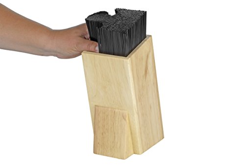 L’inserto con setole in plastica è ideale per non correre il rischio di smussare o graffiare le lame, mentre il corpo in legno laccato garantisce una buona resistenza all’usura e agli utilizzi intensivi.