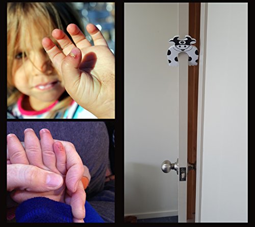 Una mucca e una scimmietta proteggono il piccolo dal rischio che le porte di casa possano chiudersi inavvertitamente quando le sue dita sono nei paraggi.