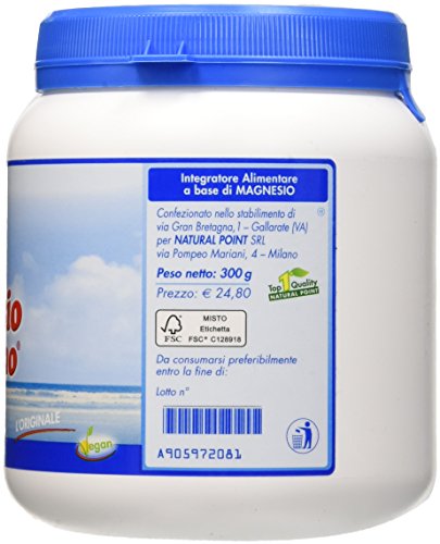 Questa confezione da 300 grammi è venduta ad un prezzo molto interessante, come fanno notare gli acquirenti. Basta per un bel po’ di tempo se viene assunto con regolarità, che vuol dire almeno una volta al giorno, anche se la dose indicata è un cucchiaino due volte al giorno. L’azienda specifica di bere l’acqua con il magnesio quando questa diventa chiara, il che significa che il prodotto è pronto per essere assunto.