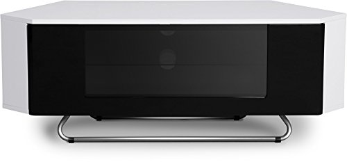 Il grande pregio di questo mobile TV ad angolo di Centurion Supports è la presenza di uno scomparto nascosto, nel quale posizionare oggetti come il videoregistratore. Lo stile molto moderno ne permette una facile collocazione in qualsiasi ambiente si voglia.