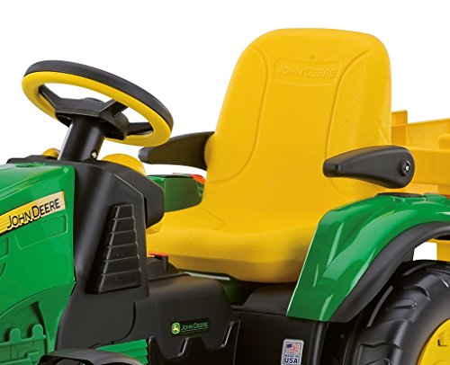 La qualità del marchio Peg Perego non tradisce le aspettative. Il trattore elettrico dispone di due motori da 165 Watt, e possiede un design che guarda a restituire il piacere di guidare un mezzo agricolo molto somigliante alla controparte originale.