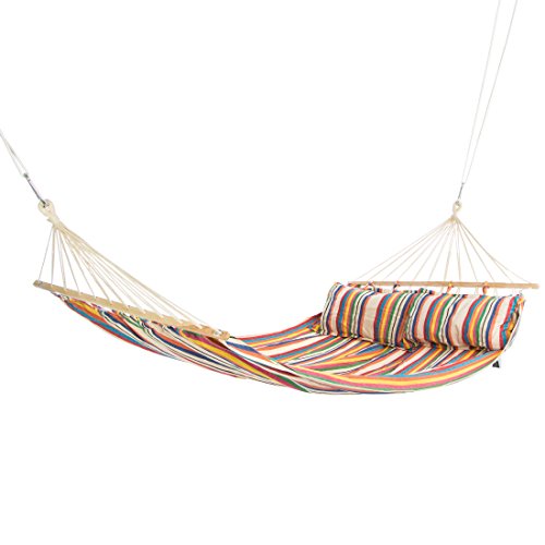 In seguito alla comparazione tra modelli da noi effettuata alla ricerca della migliore amaca da giardino dell’anno, il modello “tradizionale” che più ci ha entusiasmati è sicuramente questo. Saranno i colori vivaci e accattivanti, vera e propria calamita per i più piccini, sarà il peso estremamente ridotto a fronte di un’invidiabile robustezza, ma crediamo che sarebbe davvero difficile ritenersi insoddisfatti dell’acquisto di questa amaca.