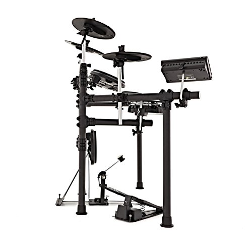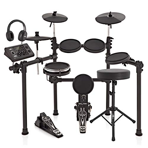 Lo strumento ha otto pezzi: cinque pad per la simulazione dei tamburi e tre piatti, uno dei quali è lo hit-hat. Il modulo offre un’ampia scelta per quanto concerne i suoni con ben 40 kit di batteria preimpostati. C’è la possibilità dell’ascolto in cuffia e di stabilire una connessione con il computer. Il rack è molto robusto ma c’è da comprare a parte lo sgabello.