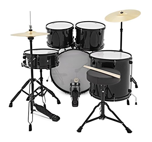Chi sta pensando all’acquisto della sua prima batteria ma senza dover spendere troppo, può prendere in considerazione questo che è uno degli articoli musicali più venduti. La batteria si compone di rullante, grancassa, timpano, due tom, un hit-hat e un piatto crash. Inoltre ci sono lo sgabello e un paio di bacchette. È chiaramente uno strumento per principianti.