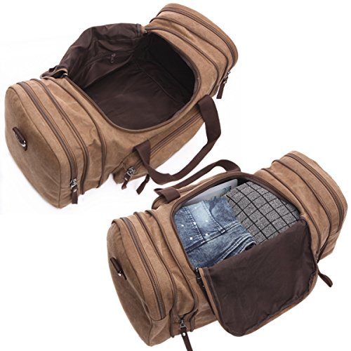 Il borsone da viaggio di EverVanz ha uno stile degno di nota, con inserti in ecopelle lavorata a mano che lo impreziosiscono donandogli un aspetto vintage. Qualora il colore Army green non rientri tra i vostri preferiti potrete scegliere tra una vasta selezione tra cui rientrano per esempio cachi, nero, grigio, giallo, verde e rosso, andando incontro alle esigenze di tutte le tipologie di utenti.