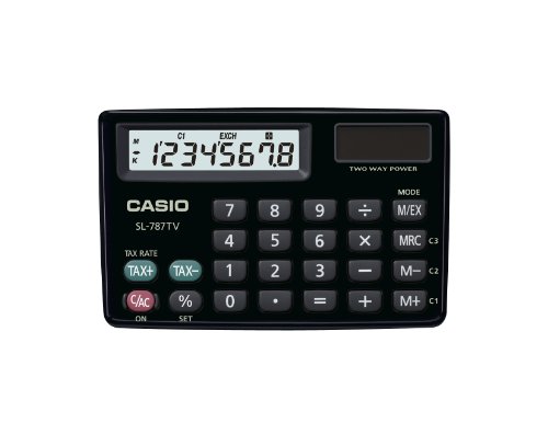 La calcolatrice finanziaria Casio, modello SL-787TV-BK-S-EH, è una calcolatrice tascabile ad alimentazione mista a batteria e celle solari.