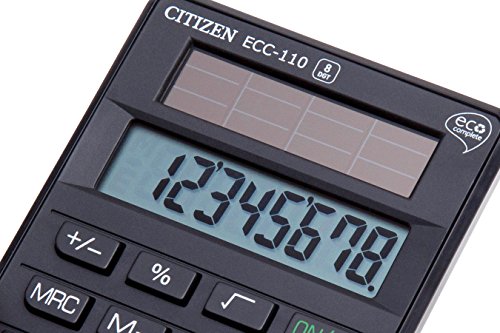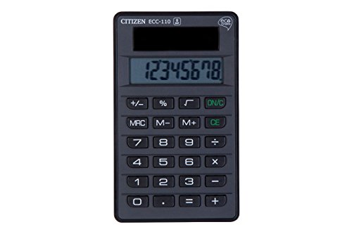 La calcolatrice ECC-110, prodotta da Citizen, è un modello tascabile, semplice, dal design minimale; è dotata di funzioni di memoria, radice quadrata e percentuale, quindi ha il pregio di essere utilizzabile in ogni circostanza, dall’ausilio allo studio fino ai calcoli della contabilità domestica.